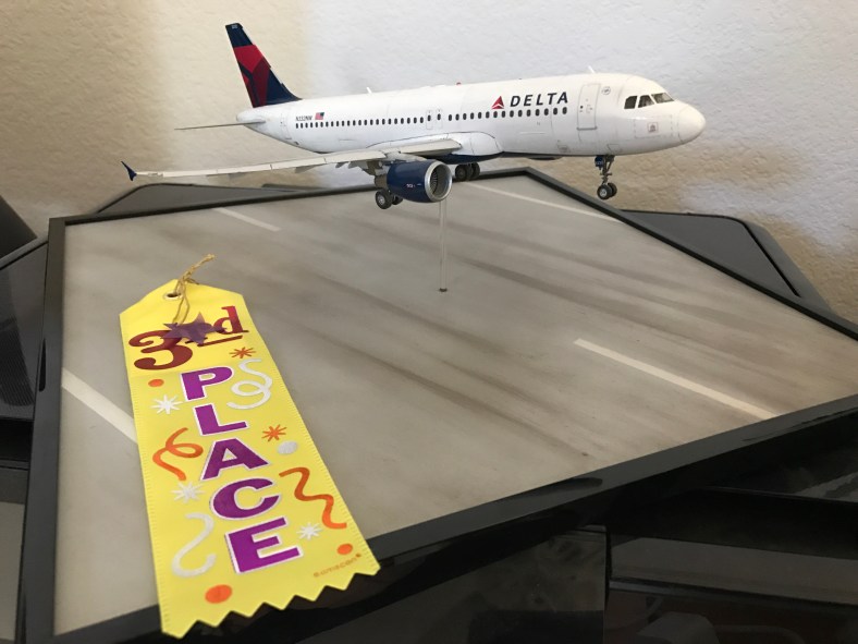 I decided late last week to take a chance and enter a model in a local hobby store’s annual contest. And while I know this Airbus A320 has flaws, I’m really proud of it, and thrilled to see that despite these flaws, it still warranted a third place. I don’t build for awards, and so this feels a little unusual putting something up for critique like this, but it’s good to get out of your comfort zone once in a while.